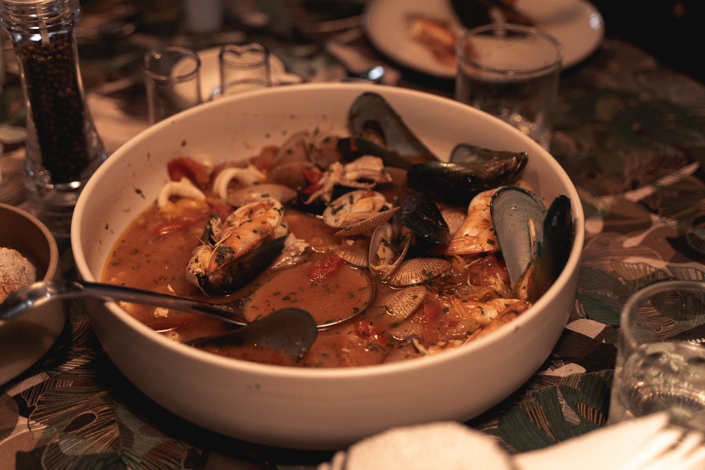 ด้านในร้านเป็นห้องพักที่ถูกตกแต่งใหม่กลายเป็นร้านอาหารโดยฝีมือฟิลิปโป้ เชฟของร้านที่รับหน้าที่ทำอาหารให้เรากินตลอดทั้งคืนรวมถึงคอยแวะออกมาพูดคุยกับพวกเราเป็นระยะ ฟิลิปโป้บอกเราว่าเฟอร์นิเจอร์แทบทั้งหมดที่เห็นเป็นของที่เขาทำขึ้นเองทั้งหมด ไม่ว่าจะเป็นชั้นวางของตามผนัง หรือโซฟาที่เราใช้นั่งพักข้างโต๊ะอาหาร